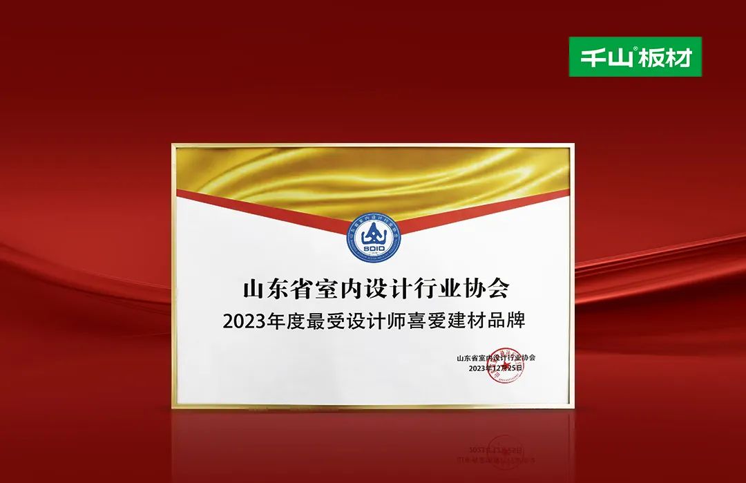 2024年1月27日,「設計圈兒」歲序雅集設計大會暨山東省室內(nèi)設計行業(yè)協(xié)會年度慶典活動在山東濟南盛大啟幕。千山板材作為活動特邀嘉賓與業(yè)內(nèi)知名企業(yè)一同參加了本次盛會,并榮膺“2023年度最受設計師喜愛建材品牌”。千山板材大區(qū)經(jīng)理王殿忠、千山板材濟南運營中心負責人牛忠良一同出席本次盛會,王經(jīng)理代表公司上臺領獎。活動