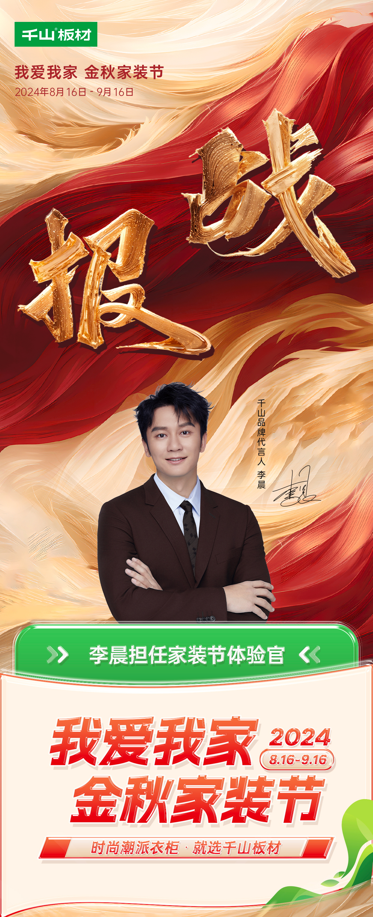 8月16日,千山金秋家裝節火爆上線,截至9月16日,為期30天的家裝節活動日前正式落下帷幕。活動期間,千山板材全國1500+門店聯動,全網曝光量超8500萬、線上直播觀看量超2000萬、簽約數量達3500+,實現了品牌聲量和銷售業績的雙豐收!