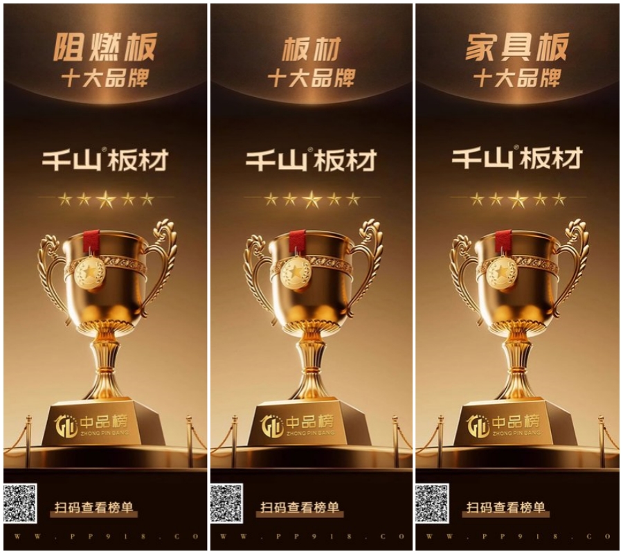 2024年4月,備受矚目的行業盛會——第八屆“中品榜”優品甄選活動圓滿落幕。在此次評選中,千山板材實力登榜,憑借卓越品質和品牌增長力,一舉拿下“板材十大品牌”、“家具板十大品牌”和“阻燃板十大品牌”三項大獎01  聚焦品牌 點亮高光時刻千山堅持“以推進時尚、健康、潮流家居板材、裝飾材料的普及應用為己任