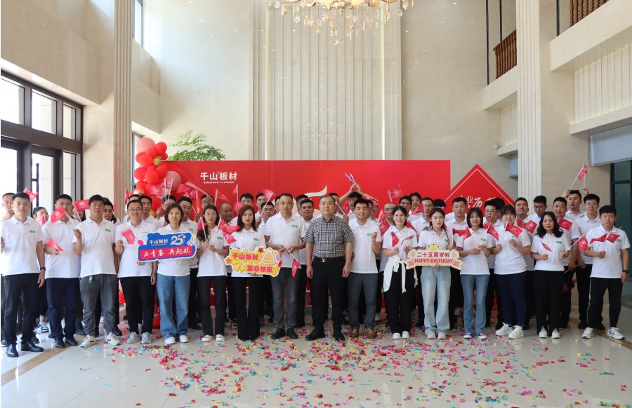 “祝千山25周年生日快樂”、“時尚潮派衣柜 就選千山板材”的嘹亮口號響徹活動現場,大家意氣風發,自信昂揚,展現了千山人新時代踔厲奮進、拼搏進取的精神。