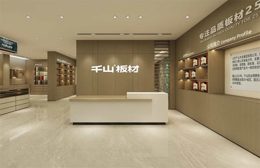 圍繞全新品牌LOGO,千山板材傾力打造新一代的門店形象,從時尚、活力、簡約的調性出發,保持品牌原有風格與精神延續,刪繁就簡,升級優化。高端優雅的質感色調,大氣有序的展示空間,傳遞出千山板材時尚、有品味的美學,為消費者打造舒適優雅的場景化沉浸式購物體驗。
