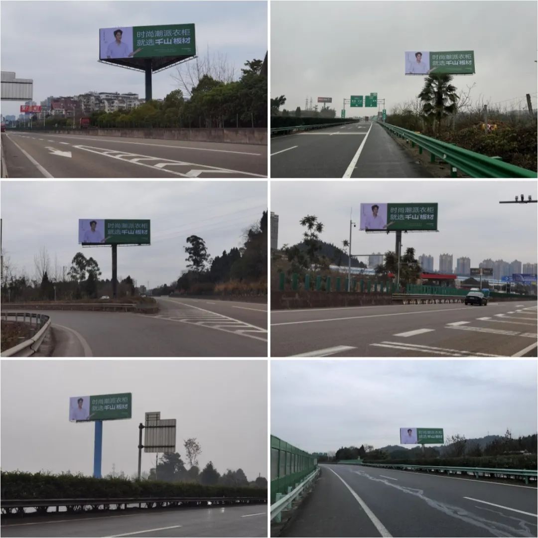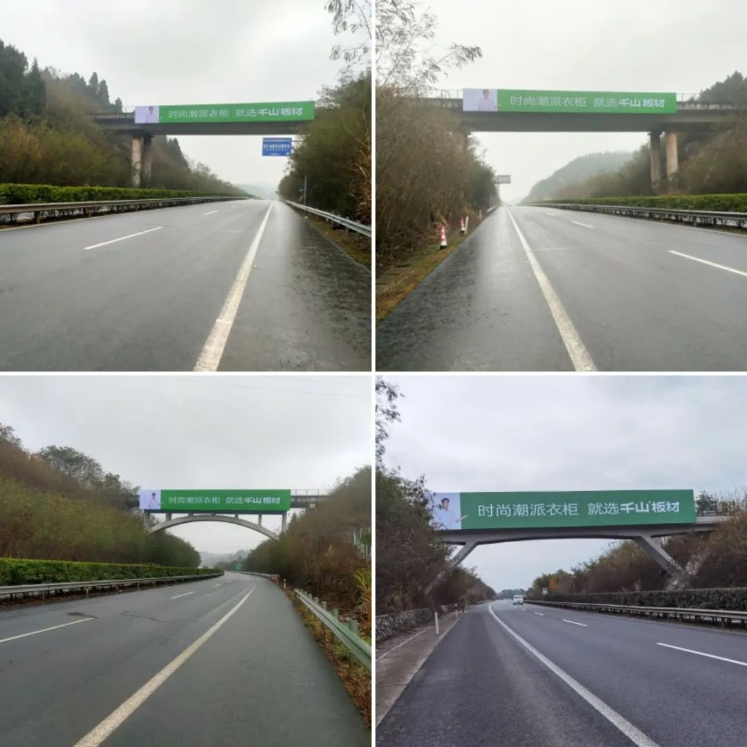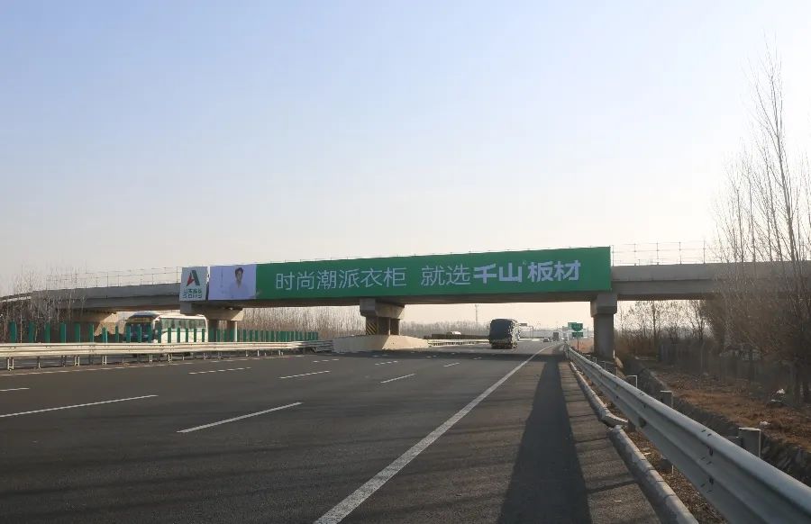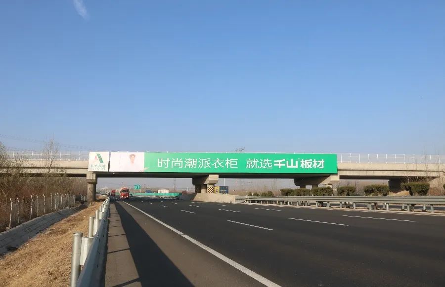 本次高速?gòu)V告形式依舊涵蓋跨線橋、單立柱,以千山2.0品牌色調(diào)綠色為主色調(diào),展示了全新品牌代言人李晨以及全新品牌LOGO。廣告畫(huà)面鮮艷、美觀、簡(jiǎn)潔,進(jìn)一步將“時(shí)尚潮派衣柜 就選千山板材”的品牌主張傳遞給更多的消費(fèi)者。