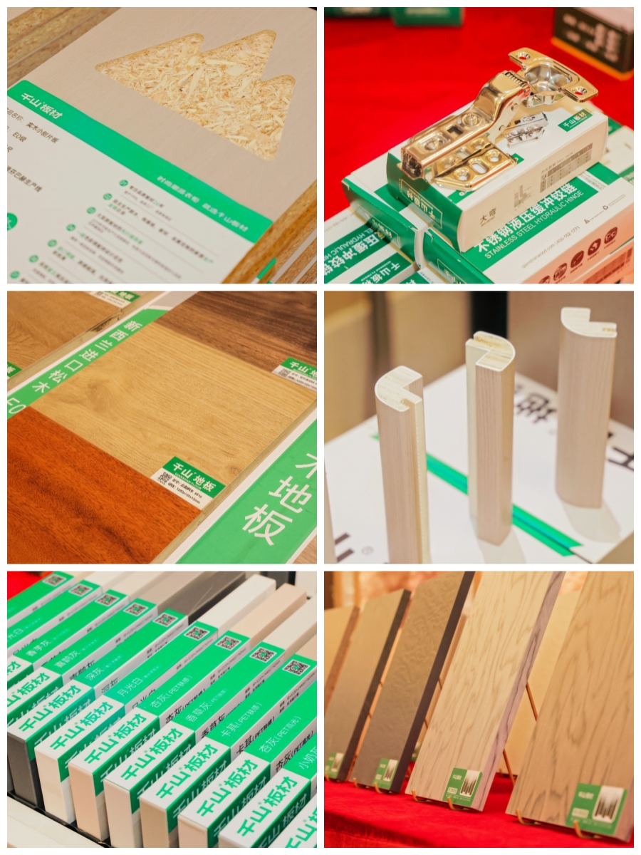 千山板材涵蓋4大品類(實木大刨片、實木小刨片、實木多層、實木香杉木 ),6大系列119款潮流花色,并打通了15款門墻柜系統花色,滿足了當下絕大多數客戶的產品需求。