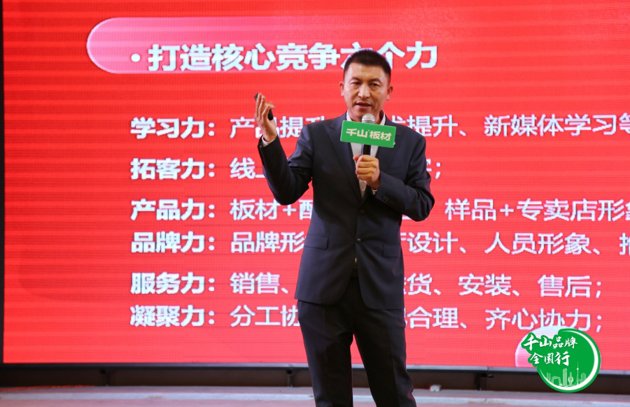 千山板材區(qū)域經理高平紅對千山的成長歷程、品牌升級戰(zhàn)略、產品優(yōu)勢進行詳細介紹。千山板材在全國已擁有1000+品牌專賣店,快速發(fā)展的背后,是千山與全國合作伙伴的緊密協(xié)作、攜手共進。