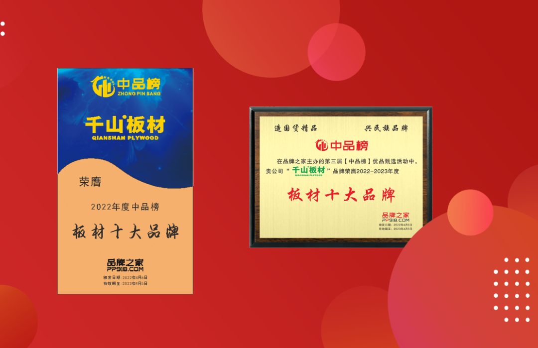 繼2021年榮獲中華板材網(wǎng)“中國(guó)板材十大品牌”、“生態(tài)板十大品牌”雙項(xiàng)殊榮后,千山板材載譽(yù)攀登,多年來(lái)相繼斬獲“板材十大品牌”、“板材影響力品牌”、“家具板十大品牌”、“2023年度最受設(shè)計(jì)師喜愛(ài)建材品牌”等多項(xiàng)行業(yè)榮譽(yù),傳遞優(yōu)秀企業(yè)的榜樣力量,積極助推行業(yè)發(fā)展!
