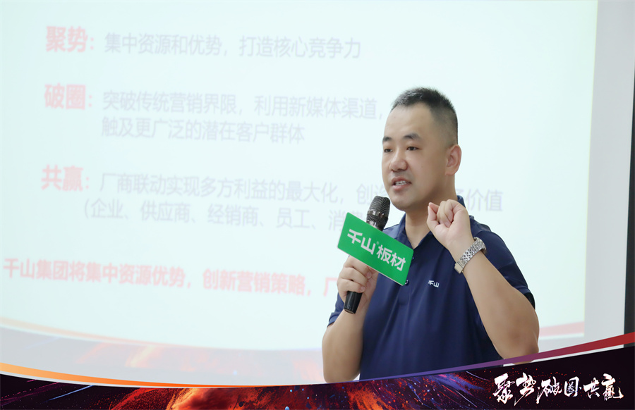 打好流量牌 把握線上渠道 將同城獲客作為重要抓手打造IP 在開營致辭中,千山板材山東倉總經理楊秀山首先對來到總部學習的伙伴們表示熱烈歡迎!楊總分享到,面對劣幣驅逐良幣的激烈競爭環境,破局向上、流量打造勢在必行。如今是短視頻和直播時代,大家要提高自身專業度,布局線上渠道,驅動增長。也希望家人們把握學習好時機,滿載而歸。
