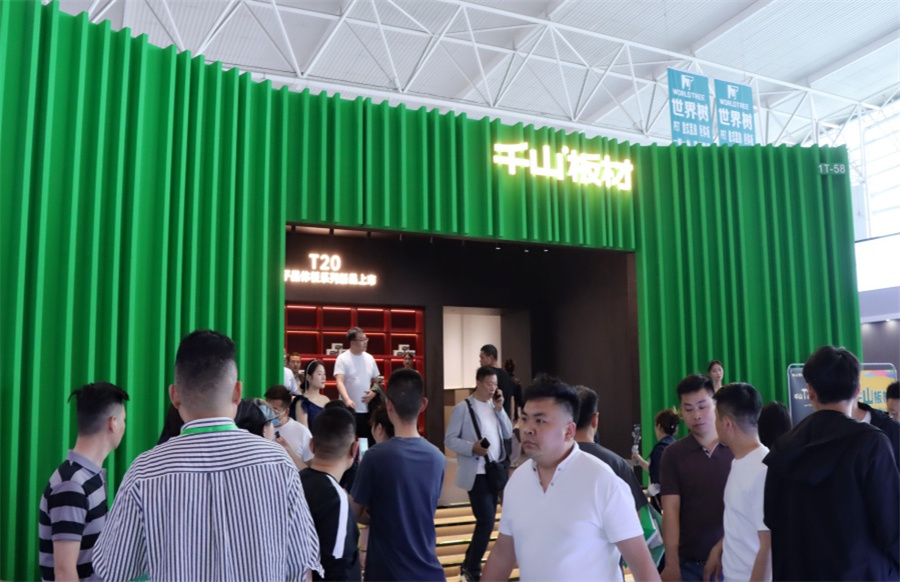 千山板材“綠BOX”展館C位出道,成為展會靚麗的風景線,關注度持續爆棚,吸引了眾多觀展商、媒體達人、行業大咖、專業觀眾前來探“秘”,感受和記錄千山板材的魅力和商業模式進階,讓更多的人了解千山板材。