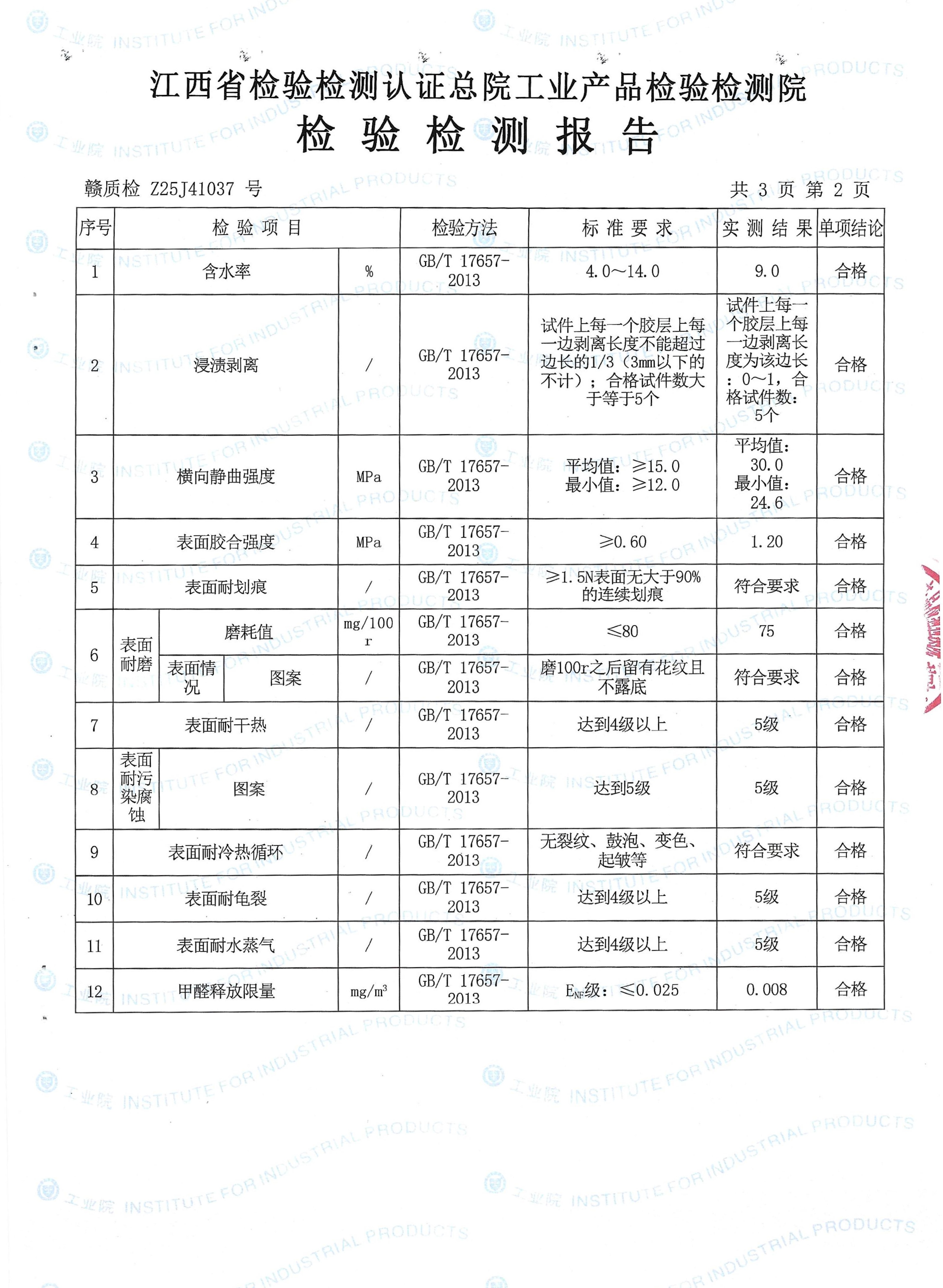 板材是否“經(jīng)久耐用”,需要通過專業(yè)的靜曲強(qiáng)度、膠合強(qiáng)度、耐磨性等多維度物理指標(biāo)來驗證,而千山板材在此次抽檢中,交出了一份“全優(yōu)答卷”。在全方位性能檢測中,千山板材的含水率、浸漬剝離強(qiáng)度、表面耐劃痕性能、表面耐磨性均優(yōu)于國家標(biāo)準(zhǔn)要求。