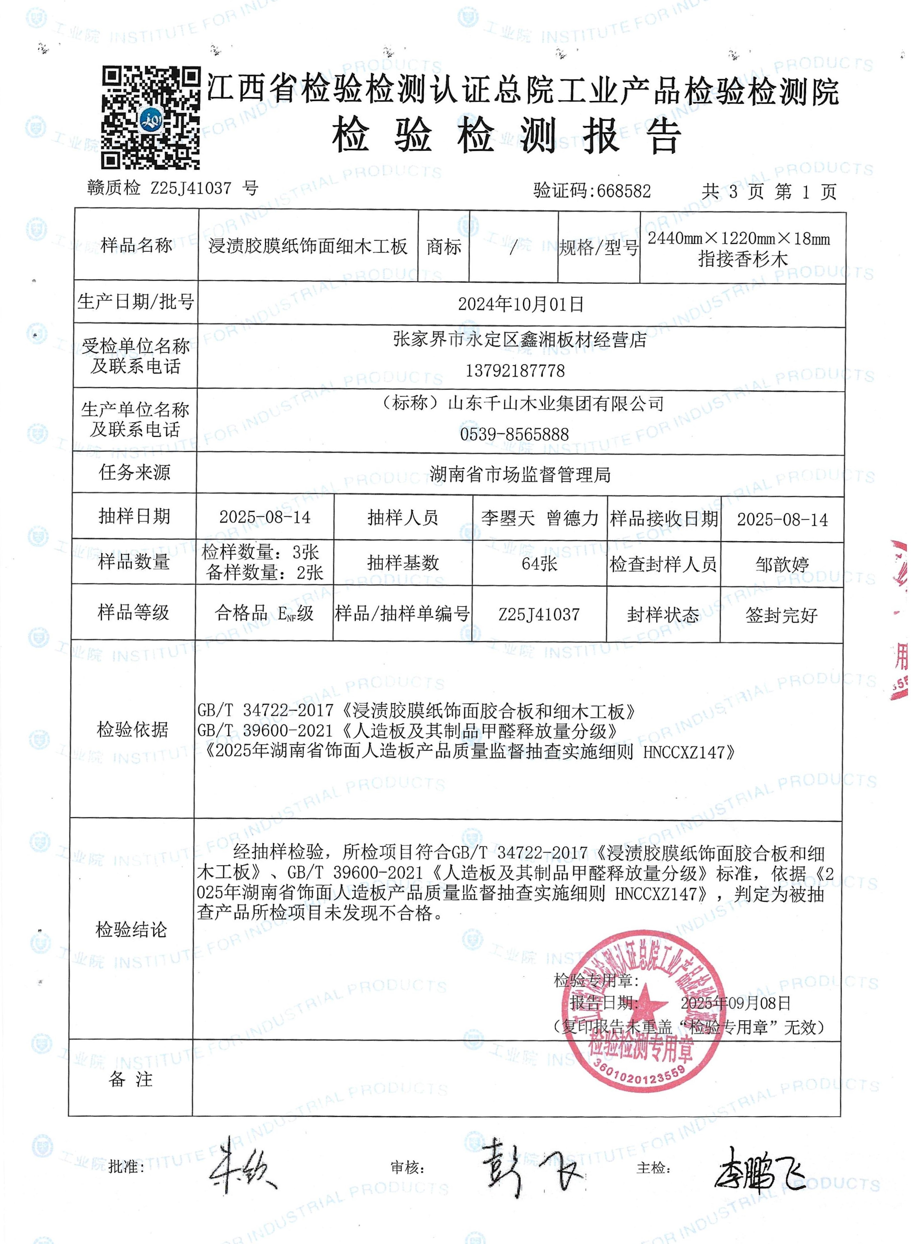 不同于企業(yè)自報的檢測數(shù)據(jù),此次抽檢是由湖南省市場監(jiān)督管理局主導(dǎo)的隨機(jī)性、公正性檢測,檢測結(jié)果更具公信力。千山板材能在此次抽檢中脫穎而出,不僅體現(xiàn)了對產(chǎn)品品質(zhì)的嚴(yán)格把控,更證明了在環(huán)保與耐用性上的實力。