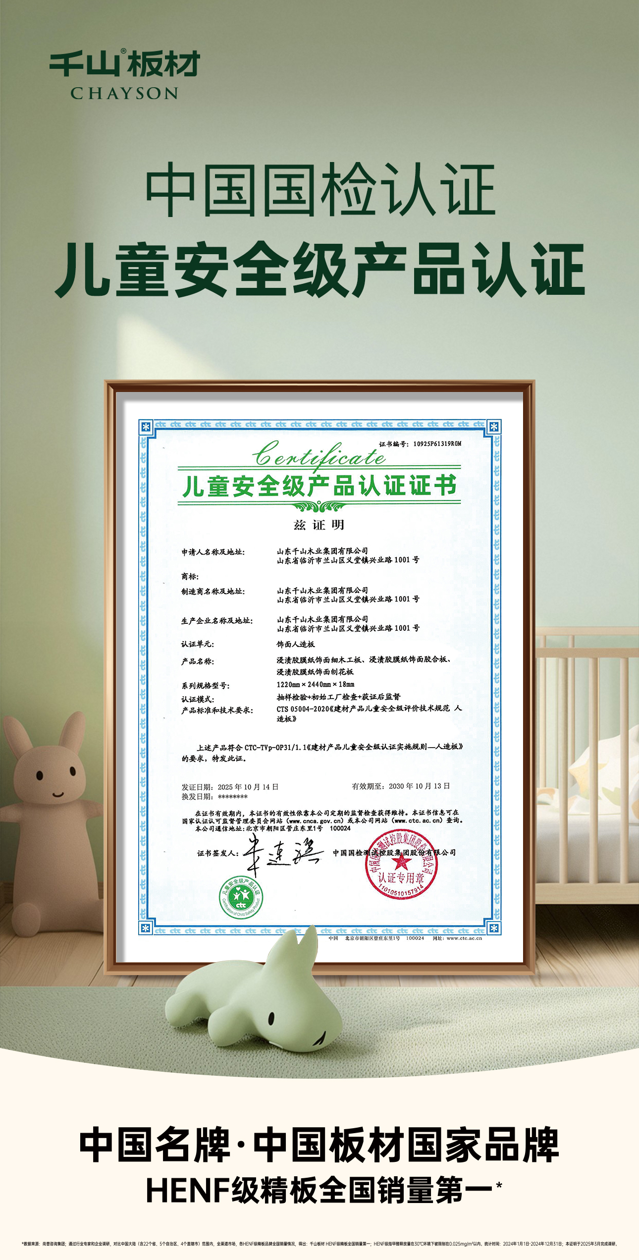 特別在孩子成長的世界里,每一寸空間的質量、每一息空氣的安全,都牽動著父母的心。而千山板材憑借卓越的環(huán)保標準和安全性能,榮獲“兒童安全級認證”和“健康建材產品認證證書”雙項權威認可,為兒童家居環(huán)境筑起一道堅實防線。