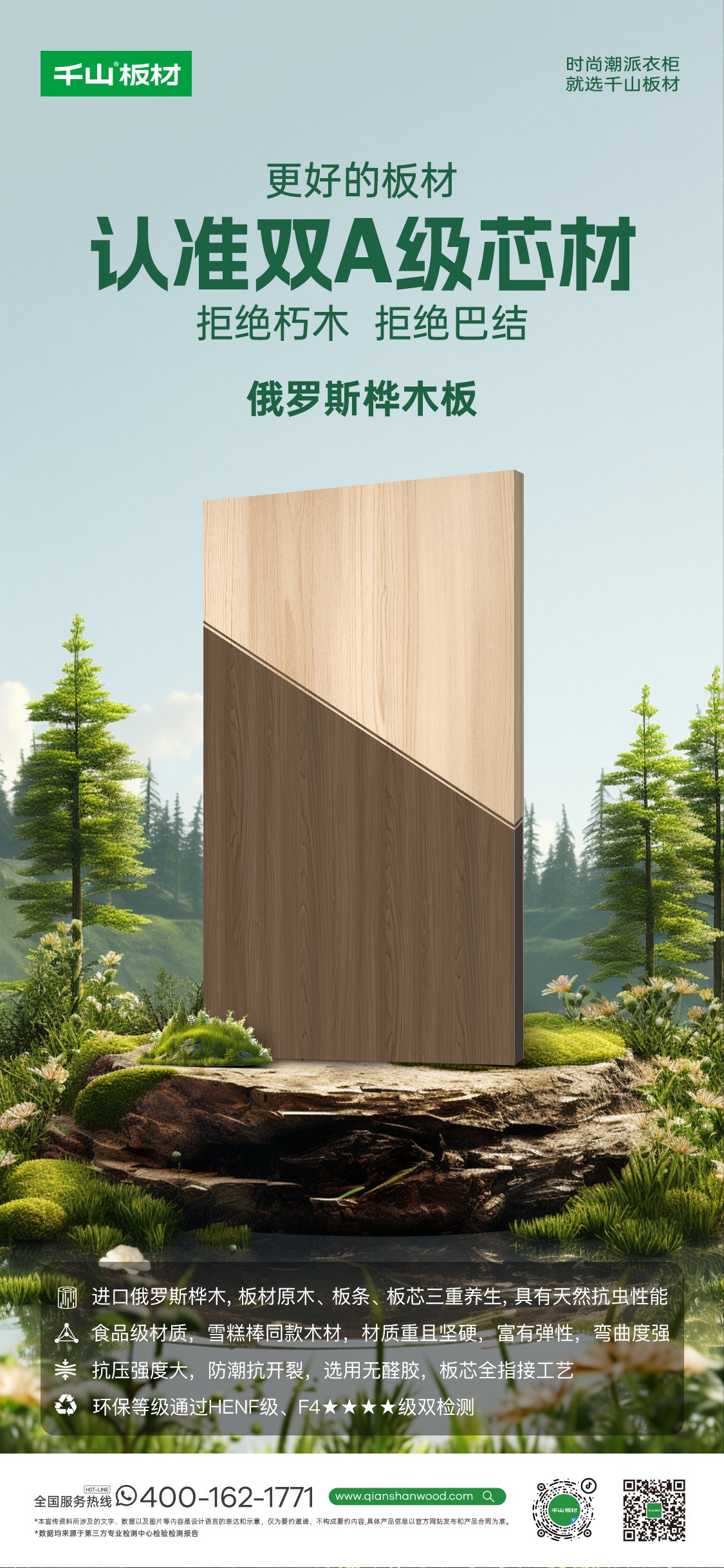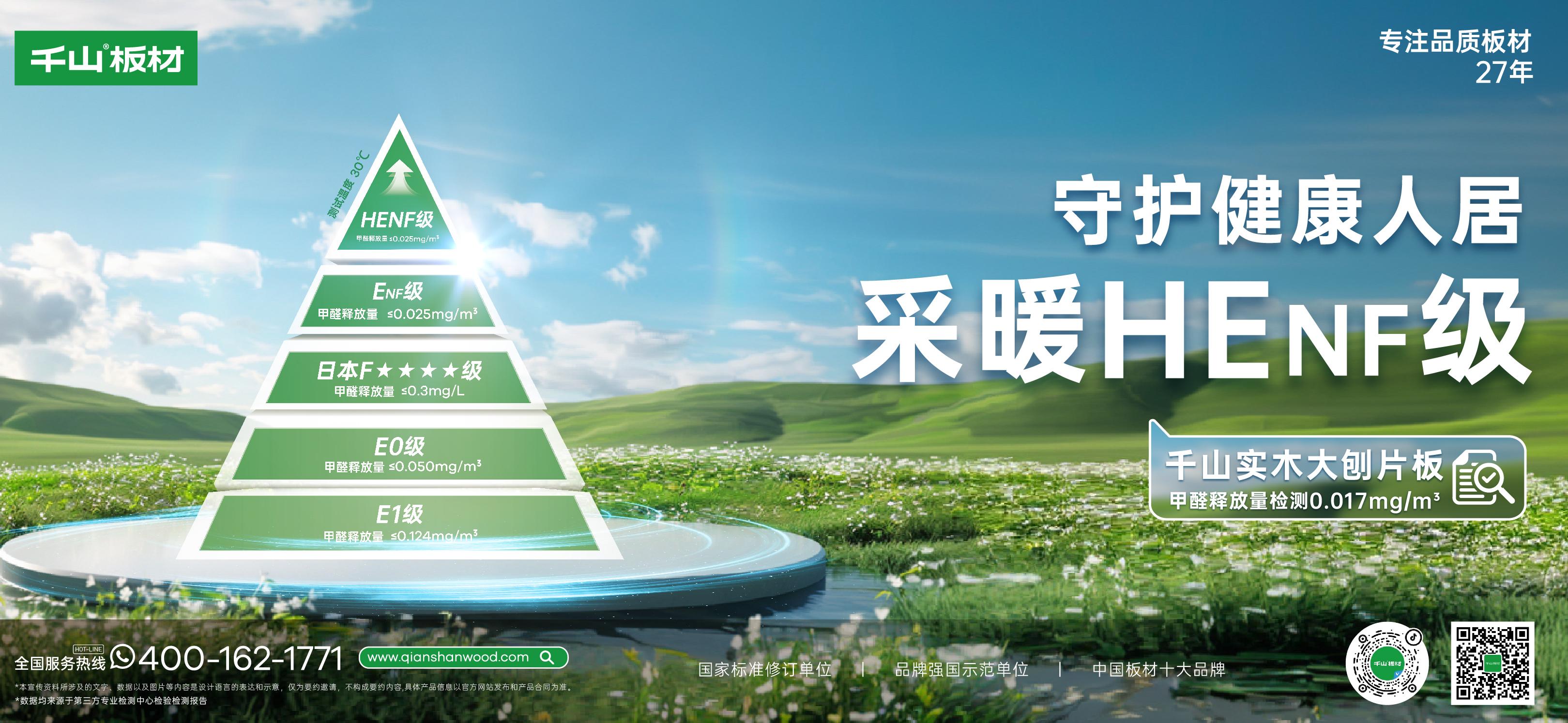 傳統(tǒng)板材環(huán)保標(biāo)準(zhǔn)多聚焦于常溫環(huán)境下的甲醛釋放量,而HEnf級的甲醛釋放量在30℃熱環(huán)境下被嚴(yán)格限制在0.025mg/m3以內(nèi),是中國林產(chǎn)工業(yè)協(xié)會于2022年5月31日發(fā)布的《采暖用人造板及其制品中甲醛釋放限量》(T/CNFPIA 1003-2022)標(biāo)準(zhǔn)中的最高等級。HENF級:環(huán)保的升級躍遷千山板材四大品類: