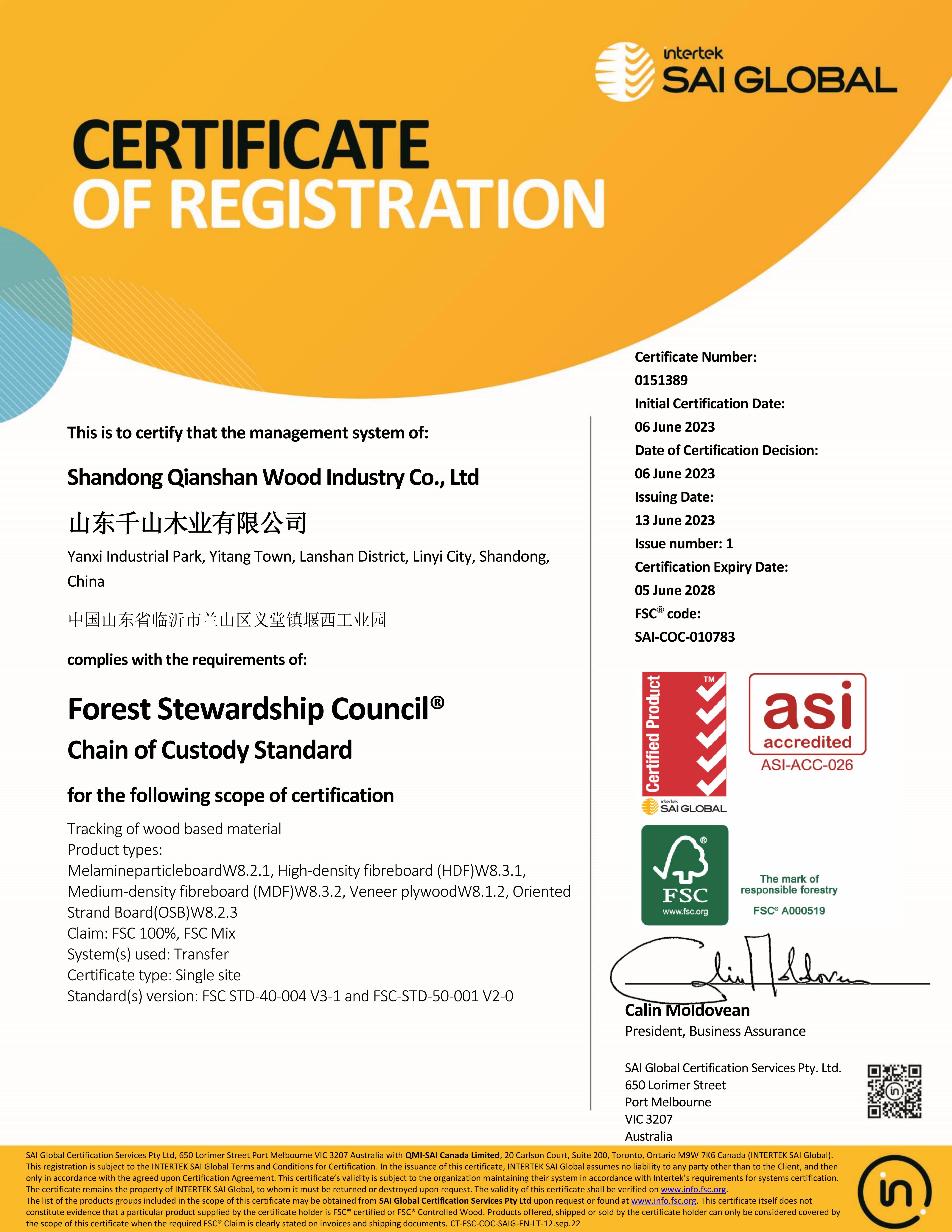 憑借對社會可持續發展的踐行和對環保理念的堅持,2023年千山再次順利通過“全球最嚴苛的”森林認證——FSC森林認證。該認證標志著一件產品來自經過環境、社會和經濟可持續管理的森林??梢哉f,消費者選擇具有FSC認證的產品,就是選擇了健康的森林和有保障的產品。