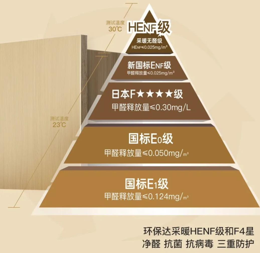 采用無醛MDI膠,生產全過程無醛添加,環保達采暖HENF級,同時通過F4星環保標準檢測,以“雙環?!敝睋舾攮h保客群需求。離子晶體板在北方供暖及南方濕熱環境條件下,甲醛釋放量仍可保持極低水平。