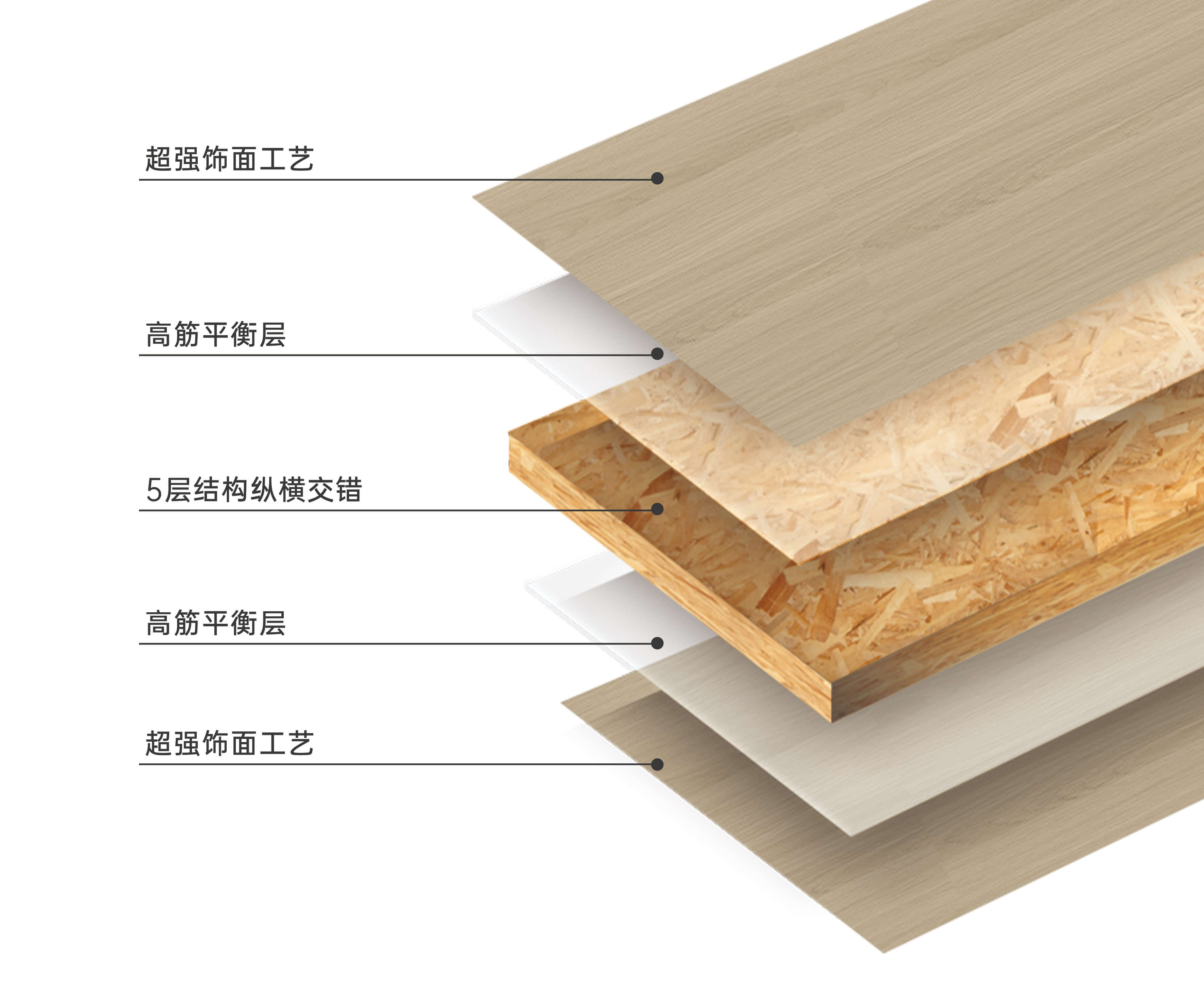 千山全能板(實(shí)木大刨片)采用德國(guó)進(jìn)口迪芬巴赫連續(xù)平壓線生產(chǎn),均質(zhì)刨片定向鋪裝,縱橫交錯(cuò)排列,5層結(jié)構(gòu)精細(xì)緊密,成就穩(wěn)定抗變性能。